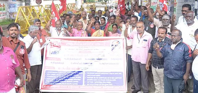 இந்த ஆர்ப்பாட்டத்தின் போது நலவாரியத்தில் பதிவு செய்த தொழிலாளர்கள் அனைவருக்கும் தீபாவளி போனசாக ரூ.7 ஆயிரம் வழங்க வேண்டும். மேலும் வீடு கட்டும் திட்டத்தை எளிமைப்படுத்த வேண்டும். இதேபோல் 18 நலவாரியங்களிலும் ஒரே மாதிரியான இணையதள நடைமுறையை பின்பற்ற வேண்டும். நலவாரியத்தில் பதிவுபெற்ற தொழிலாளர்களுக்கு குடும்ப உறுப்பினர்களின் அரசு பணியை காரணம் காண்பித்து உரிமையை நிராகரிக்க கூடாது என்பன உள்பட 9 அம்ச கோரிக்கைகளை வலியுறுத்தி கோஷமிட்டனர். மேலும் கோரிக்கைகள் அடங்கிய மனுவை கலெக்டரிடம் கொடுத்தனர்.