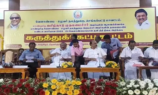 முதல்-அமைச்சர் மு.க.ஸ்டாலின் ஆணைக்கிணங்க வேளாண்மை உழவர் நலத்துறை சார்பில் 2023-24 வேளாண்மைக்கான தனி பட்ஜெட் தயாரிக்க செங்கல்பட்டு, காஞ்சீபுரம், திருவண்ணாமலை, விழுப்புரம், திருவள்ளூர், ராணிப்பேட்டை, சென்னை மாவட்டங்களை சேர்ந்த விவசாயிகள், விவசாய சங்க பிரதிநிதிகள் ஆகியோரிடம் கருத்து கேட்பு கூட்டம் செங்கல்பட்டு மாவட்டம் மறைமலைநகரில் உள்ள மாநில ஊரக வளர்ச்சி நிறுவனத்தில் உள்ள கலையரங்கத்தில் நடைபெற்றது.