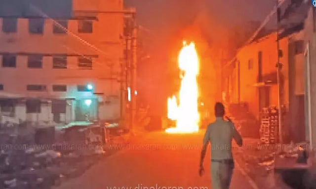 சென்னை பல்லாவரம் அடுத்த பம்மல் அருகே நாகல்கேணியில் உள்ள தனியார் குடோனுக்கு பெயிண்டு தயாரிக்க பயன்படுத்தப்படும் 18 டன் மூலப்பொருட்களை ஏற்றிக்கொண்டு ஐதராபாத்தில் இருந்து கன்டெய்னர் லாரி ஒன்று வந்தது. லாரியை ராஜஸ்தான் மாநிலத்தை சேர்ந்த இர்பான்(வயது 25) என்பவர் ஓட்டி வந்தார். நேற்று அதிகாலை நாகல்கேணிக்கு வந்தபோது, கன்டெய்னர் லாரி மீது தாழ்வாக சென்ற உயர் மின்அழுத்த கம்பி உரசியது. இதில் கன்டெய்னர் லாரியில் மின்சாரம் பாய்ந்து கன்டெய்னர் பெட்டியில் இருந்த மூலப்பொருட்கள் தீப்பிடித்து எரியத்தொடங்கியது.