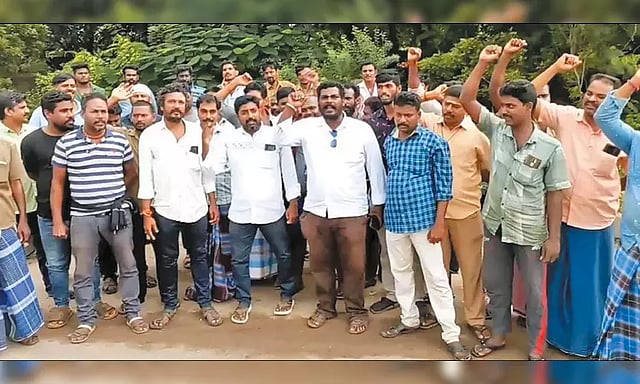 சென்னை மணலி விரைவு சாலையில் கன்டெய்னர் லாரி டிரைவர் ஒருவர், காக்கி சீருடை அணியாமல் லுங்கி அணிந்து இருந்ததால் அவருக்கு போக்குவரத்து போலீஸ் இன்ஸ்பெக்டர் 500 ரூபாய் ஆபராதம் விதித்துள்ளார். இதற்கு எதிர்ப்பு தெரிவித்து மணலி விரைவு சாலை எம்.எப்.எல். சந்திப்பில் கன்டெய்னர் லாரி டிரைவர்கள் 100-க்கும் மேற்பட்டோர் போக்குவரத்து போலீசாரை கண்டித்து ஆர்ப்பாட்டத்தில் ஈடுபட்டு கோஷங்களை எழுப்பினர்.