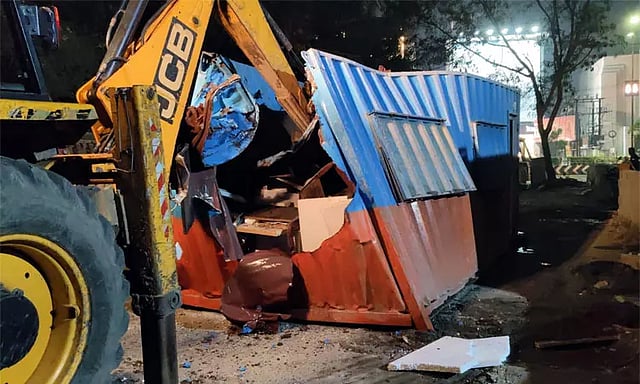 இந்நிலையில், பெருநகர சென்னை மாநகராட்சி, தேனாம்பேட்டை மண்டலம், வார்டு-118ல் தனியார் மருத்துவமனை கட்டுமானப் பணிகளுக்காக அந்நிறுவனத்தின் சார்பில் சாலையில் மக்களுக்கும் போக்குவரத்திற்கும் இடையூறு ஏற்படுத்தும் வகையில் நிறுத்தி வைக்கப்பட்டிருந்த கண்டெய்னரை மாநகராட்சி அலுவலர்கள் அப்புறப்படுத்தி, மேற்கண்ட நிறுவனத்திற்கு ரூ.1 லட்சம் அபராதம் விதித்து வசூலிக்கப்பட்டுள்ளது.