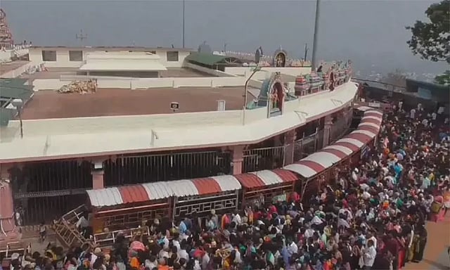 பக்தர்கள் கூட்டம் அதிகமாக உள்ளதால் மலைக்கோவில் வழியாக சாமி தரிசனம் செய்ய அனுமதி அளிக்கப்பட்டுள்ளது. சாமி தரிசனம் செய்துவிட்டு பக்தர்கள் கீழே இறங்கி வருவதற்கு படிப்பாதை வழியாக அனுமதிக்கப்பட்டுள்ளனர்.