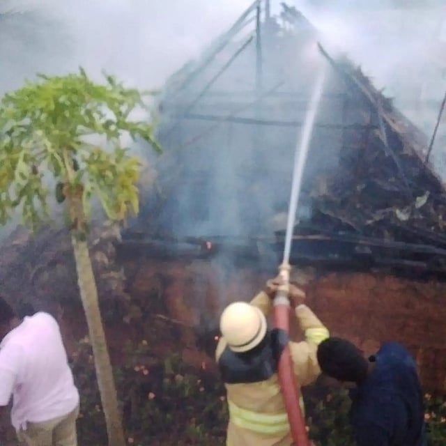 நாட்டறம்பள்ளியை அடுத்த ஆத்தூர்குப்பம் குட்டகொல்லி வட்டம் பகுதியைச் சேர்ந்தவர் பீமராஜன். இவரது மகன் மணி (வயது 48). விவசாயம் செய்து வருகிறார். இவரது குடிசை வீட்டில் நேற்று மாலை 7 மணியளவில் மின் கசிவு காரணமாக தீ விபத்து ஏற்பட்டுள்ளது. உடனே வீட்டில் இருந்த அனைவரும் வெளியே ஓடிவிட்டனர்.