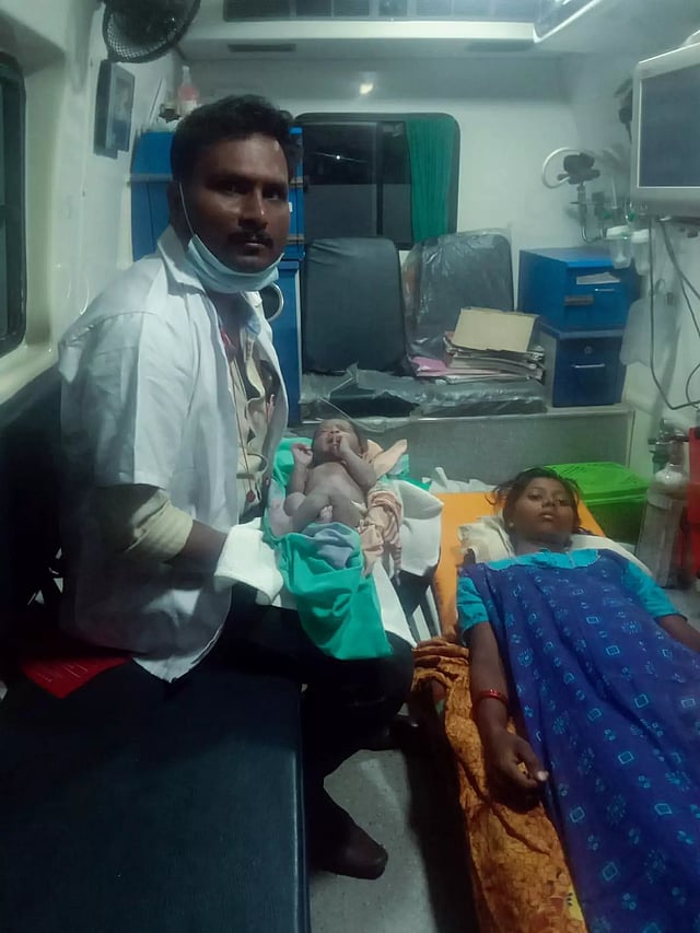 உடனடியாக அவரை ஆம்புலன்ஸ் மூலம் ஒடுகத்தூர் ஆரம்ப சுகாதார நிலையத்துக்கு அழைத்து சென்றனர். ஆம்புலன்சை டிரைவர் பரந்தாமன் ஓட்டி வந்தார். அப்போது, வழியிலேயே பிரசவ வலி அதிகமானதால் ஆம்புலன்சை நிறுத்தி மருத்துவ உதவியாளர் சண்முகம் பிரசவம் பார்த்தார். அதில் கவுதமிக்கு ஆண் குழந்தை பிறந்தது.