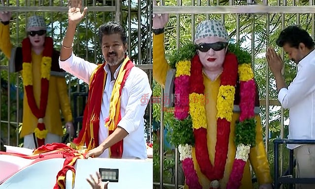இன்று வேட்புமனு தாக்கல் செய்ய முடியும் என்பதால், திருச்சி கிழக்கு தொகுதியில் வேட்புமனு தாக்கல் செய்வதற்காக இன்று (வியாழக்கிழமை) காலை சென்னையில் இருந்து தனி விமானம் மூலம் விஜய் திருச்சிக்கு சென்றார். அங்கு கிழக்கு தொகுதி தேர்தல் நடத்தும் அதிகாரி அலுவலகம் அமைந்துள்ள திருச்சி மாநகராட்சி இரண்டாவது மண்டலக்குழு அலுவலகத்தில் தனது வேட்புமனுவை தாக்கல் செய்தார். அதன் பின்னர் திறந்த வேனில் நின்றபடியே மரக்கடை எம்.ஜி.ஆர். சிலை அருகே விஜய் தேர்தல் பிரசாரம் செய்தார். திருச்சி கிழக்கில் பிரசாரத்தை தொடங்குவதற்கு முன்பு எம்.ஜி.ஆ.ர் சிலைக்கு மாலை அணிவித்து விஜய் மரியாதை செலுத்தினார்.