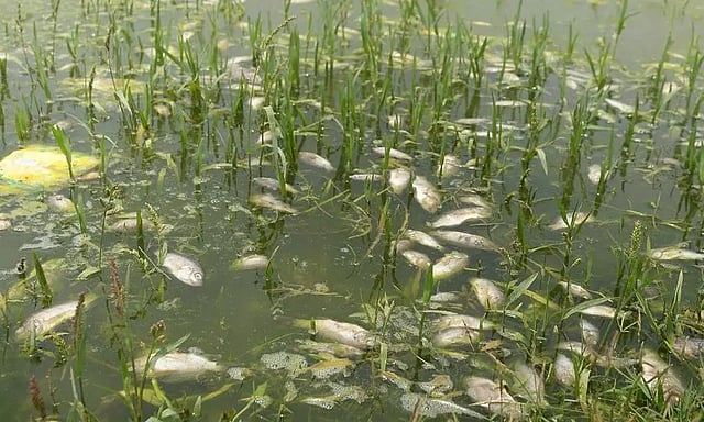 திண்டுக்கல் அருகே உள்ள தோட்டனூத்து ஊராட்சியில் ராமன் குளம் 5 ஏக்கர் பரப்பளவில் அமைந்துள்ளது. இந்த குளத்தில் அதிக அளவில் மீன்கள் இருந்தன. இந்த நிலையில் குளத்தில் அந்த மீன்கள் அனைத்தும் செத்து மிதந்தன. மேலும் அங்கு துர்நாற்றமும் வீசியது. இதுபற்றி தகவல் அறிந்த ஊராட்சி மன்ற தலைவர் சித்ரா ராதாகிருஷ்ணன் சம்பவ இடத்துக்கு விரைந்து வந்தார். குளத்தில் துர்நாற்றம் வீசியதால் தண்ணீரில் யாரேனும் விஷம் கலந்து இருக்கலாம் என சந்தேகம் ஏற்பட்டது. இதையடுத்து சுகாதாரத்துறை அதிகாரிகள் மற்றும் கால்நடை துறை அதிகாரிகளுக்கு தகவல் தெரிவிக்கப்பட்டது. முன்னெச்சரிக்கை நடவடிக்கையாக குளத்திலோ அல்லது குளத்தில் இருந்து வடிகால் வழியாக வெளியேறி கொண்டிருக்கும் தண்ணீரை ஆடு, மாடுகள் குடிக்காமல் இருக்க பொதுமக்கள் கண்காணிக்கும்படி ஊராட்சி மன்ற தலைவர் சித்ரா ராதாகிருஷ்ணன் பொதுமக்களுக்கு வேண்டுகோள் விடுத்துள்ளார். இந்த சம்பவத்தால் அப்பகுதியில் பரபரப்பு ஏற்பட்டது.