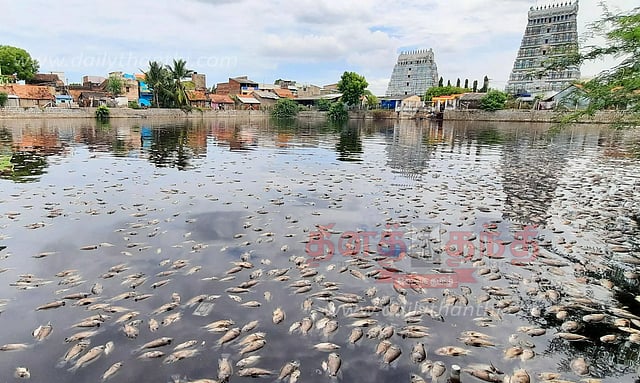 இந்த தீர்த்த குளத்தில் ஏராளமான மீன்கள் செத்து மிதந்தன. குளம் முழுவதும் மீன்கள் குவியல் குவியலாக செத்து மிதப்பதை கண்ட அப்பகுதியினர் அதிர்ச்சி அடைந்தனர். குளத்தில் மீன்கள் செத்து மிதந்ததால் அந்த பகுதி முழுவதும் துர்நாற்றம் வீசியது.