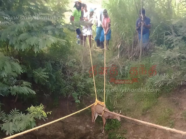 பாலக்கோடு அருகே குத்தலஅள்ளி கிராமத்தில் கோவிந்தசாமி என்பவருடைய 60 அடி ஆழ கிணற்றில் நேற்று முன்தினம் இரவு 3 வயதுடைய ஆண் புள்ளிமான் ஒன்று தவறி விழுந்தது. அப்போது கிணற்றில் 40 அடிக்கு தண்ணீர் இருந்தது. இதனால் மான் தண்ணீரில் தத்தளித்து கொண்டிருந்தது. நேற்று காலை மானின் சத்தம் கேட்டு அக்கம் பக்கத்தினர் ஓடி சென்று பார்த்தனர். பின்னர் இதுகுறித்து பாலக்கோடு தீயணைப்பு நிலையத்துக்கு தகவல் தெரிவிக்கப்பட்டது. அதன்படி சம்பவ இடத்துக்கு சென்ற தீயணைப்பு படை வீரர்கள் கிணற்றில் தவித்த புள்ளிமானை கயிறு கட்டி உயிருடன் மீட்டு பாலக்கோடு வனத்துறையினரிடம் ஒப்படைத்தனர். வனத்துறை அதிகாரிகள் புள்ளி மானை பிக்கிலி வனப்பகுதியில் உள்ள பனைக்குளம் பகுதிக்கு கொண்டு சென்று விட்டனர்.