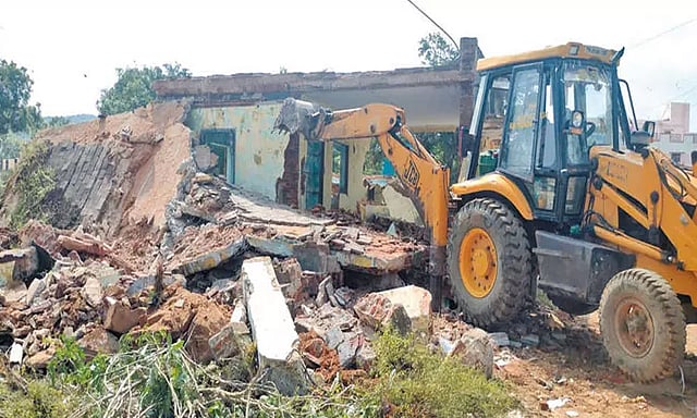 செங்கல்பட்டு மாவட்டம் நந்திவரம் அரசு கால்நடை ஆஸ்பத்திரி அருகே உள்ள பழைய ஆஸ்பத்திரி கட்டிடங்கள் மிகவும் மோசமான நிலையில் பழுதடைந்து காணப்பட்டன. இந்தப் பழுதடைந்த கட்டிடத்தில் மர்மநபர்கள் சிலர் சமூக விரோத செயல்களில் ஈடுபட்டு வந்ததாக கூறப்பட்டது. இதுகுறித்து அப்பகுதியை சேர்ந்த பொதுமக்கள் பலமுறை போலீசாரிடம் புகார் அளித்தனர். இந்த நிலையில் கால்நடை துறைக்கு சொந்தமான 5 ஏக்கர் இடத்தில் 4 ஏக்கர் நிலத்தை நந்திவரம்-கூடுவாஞ்சேரி நகராட்சிக்கு அரசு ஒதுக்கி உள்ளது. இதனையடுத்து நகராட்சிக்கு ஒதுக்கிய இடத்தில் இருந்த பழுதடைந்த பழைய கால்நடை ஆஸ்பத்திரி கட்டிடம் இருந்ததால் அதனை நேற்று நகராட்சி நிர்வாகம் பொக்லைன் எந்திரம் மூலம் இடித்து அகற்றினார்கள்.
