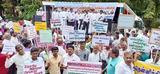 இதில் மணிப்பூரில் அமைதி திரும்ப நடவடிக்கை எடுக்க வேண்டும். கலவரத்திற்கு காரணமானவர்கள் மீது கடும் நடவடிக்கை எடுக்க வேண்டும் என்பது உள்ளிட்ட கோரிக்கைகளை வலியுறுத்தினர். ஆர்ப்பாட்டத்தில் சேலம் கிறிஸ்துநாதர் ஆலய ஆயர் ஜவகர்வில்சன், லெக்னர் நினைவு ஆலய ஆயர் எழில் ராபர்ட் கெவின் உள்பட திரளான கிறிஸ்தவர்கள் கலந்து கொண்டனர்.
