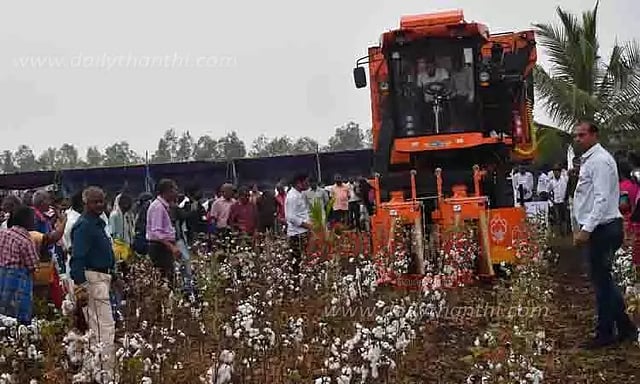 பெரம்பலூர் மாவட்டம், வேப்பந்தட்டை பருத்தி ஆராய்ச்சி நிலையத்தில் நவீன எந்திரம் கொண்டு பருத்தி அறுவடை செய்வது குறித்த செயல் விளக்கம் நடைபெற்றது. இந்த செயல் விளக்கத்தை பிரபாகரன் எம்.எல்.ஏ. தொடங்கி வைத்தார். ஆடுதுறை நெல் ஆராய்ச்சி நிலைய இயக்குனர் சுப்பிரமணியன், கோயம்புத்தூர் வேளாண்மை பல்கலைக்கழக பயிர் மேலாண்மை இயக்குனர் கலாராணி, பெரம்பலூர் வேளாண்மை இணை இயக்குனர் கருணாநிதி மற்றும் பலர் முன்னிலை வகித்தனர். இதில் நவீன எந்திரம் கொண்டு பருத்தி அறுவடை செய்வது, அதற்கு ஏற்ப சரியான இடைவெளியில் விதைகளை ஊன்றும் முறைகள் ஆகியவை பற்றி விவசாயிகளுக்கு எடுத்து கூறப்பட்டது. இதில் பருத்தி விவசாயிகள் பலர் கலந்து கொண்டு பயனடைந்தனர்.