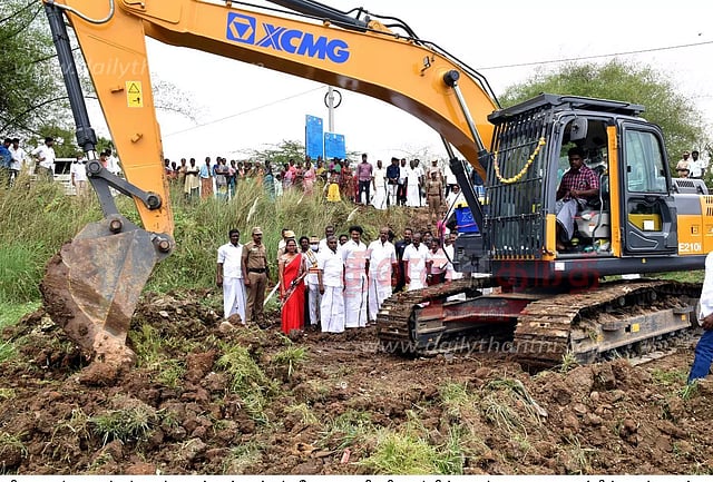 கூத்தாநல்லூர் அருகே வடிகால் வாய்க்கால் தூர்வாரும் பணியை அமைச்சர் அன்பில் மகேஷ் பொய்யாமொழி தொடங்கி வைத்தார்.