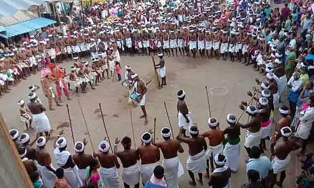 குளித்தலை வட்ட பகுதியில் உள்ள சில ஊர்களில் உள்ள மந்தைகளை சேர்ந்த சுமார் 25-க்கும் மேற்பட்ட கிராமங்களைச் சேர்ந்த கம்பளத்து நாயக்கர் இனமக்கள் பொங்கல் விழாவை முன்னிட்டு குளித்தலை அருகே அய்யர்மலையில் உள்ள ரெத்தினகிரீசுவரர் கோவிலுக்கு தாங்கள் வளர்க்கும் கோவில் மாடுகளுடன் வந்து வழிபடுவது வழக்கம். அதேபோல் இந்த ஆண்டும் இந்த வழிபாடு செய்யும் நிகழ்ச்சி நேற்று நடைபெற்றது. இதில் 25-க்கும் மேற்பட்ட கிராமங்களைச் சேர்ந்த கம்பளத்து நாயக்கர் இன ஆண்கள் தங்கள் பகுதியில் வளர்க்கும் கோவில் மாடுகளுக்கு பூஜைகள் செய்து மாலை அணிவித்து ஒன்று கூடி பாரம்பரிய இசை கருவிகளை வாசித்தும். சிலர் கோமாளிவேடம் அணிந்தும் தங்கள் ஊர்களில் இருந்து அய்யர்மலையில் உள்ள ரெத்தினகிரீசுவரர் கோவிலுக்கு வந்தனர். ஆண்கள் கையில் குச்சியுடன் மேல்சட்டை அணியாமல் வந்திருந்தனர். கோவிலுக்கு வந்த இவர்கள் கோவில் முன்பு தங்கள் மாடுகளை நிற்க வைத்து சந்தனம் பூசி பொட்டு வைத்து ரெத்தினகிரீசுவரரை வணங்கி மாடுகளுக்கு மரியாதை செலுத்தினார்கள். பின்னர் மாடுகளை சிறிது தூரம் ஓட செய்து மாலை தாண்டும் நிகழ்ச்சி நடத்தினர். இதன்பிறகு நாயக்கர் இனத்தின் ஆண்கள் கோவில் முன்பு கிராமம் கிராமமாக பிரிந்து தங்களின் பாரம்பரிய நடனமான தேவராட்டம் மற்றும் ஒயிலாட்டம் ஆடினார்கள். இந்த நிகழ்ச்சியை குளித்தலை சுற்றுவட்டார பகுதியைச் சேர்ந்த திரளான பொதுமக்கள் வந்திருந்து பார்த்து ரசித்தனர்.