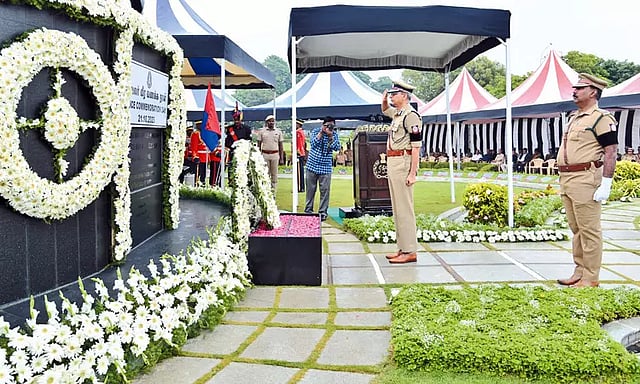 மரணமடைந்த போலீசார், துணை ராணுவ படை வீரர்களுக்கு அஞ்சலி செலுத்தும் அடையாளமாக டி.ஜி.பி. அலுவலக வளாகத்தில் உள்ள காவலர் நினைவு சின்னத்தில் போலீஸ் டி.ஜி.பி. சங்கர் ஜிவால் மலர் வளையம் வைத்து அஞ்சலி செலுத்தினார். பின்னர், இறந்த போலீசாரை பற்றி நினைவுக்கூர்ந்து பேசினார்.