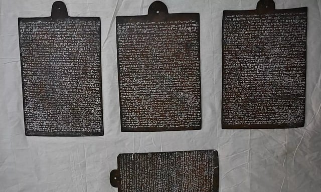 திருச்சி மாவட்டம் முசிறியில் பிரசித்திபெற்ற சந்திரமவுலீஸ்வரர் கோவில் உள்ளது. இக்கோவிலில் இந்து சமய அறநிலையத்துறையின் சுவடித்திட்ட பணியின் ஒருங்கிணைப்பாளர் பேராசிரியர் தாமரைப்பாண்டியன் தலைமையில் பேராசிரியர்கள் முனியாண்டி, தமிழ் சந்தியா, பிரகாஷ் குமார் ஆகியோர் கள ஆய்வு பணியில் ஈடுபட்டனர். அப்போது, அங்கு பழங்காலத்தை சேர்ந்த 4 செப்பு பட்டயங்கள் கண்டெடுக்கப்பட்டுள்ளன.