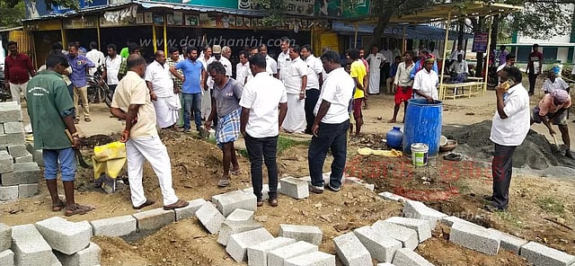தொடர்ந்து பேரூராட்சி அலுவலர்கள், பணியாளர்கள் கட்சி கொடிக்கம்பங்கள் மற்றும் கட்டுமான பணிக்கு தேவையான பொருட்களை அங்கிருந்து அகற்றினர். இதுகுறித்து தகவல் அறிந்ததும் அரசியல் கட்சியினர் அந்த பகுதியில் திரண்டனர். இதனால் அந்த பகுதியில் பரபரப்பு மற்றும் பதற்றம் நிலவியது. இதையடுத்து அந்த பகுதியில் பாதுகாப்புக்காக போலீசார் குவிக்கப்பட்டனர்.