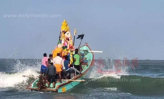 நாகையில் 10 விநாயகர் சிலைகள் கடலில் கரைக்கப்பட்டன.