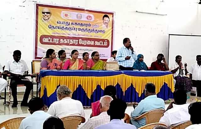 அரக்கோணம் வட்டார வளர்ச்சி அலுவலகத்தில் ராணிப்பேட்டை மாவட்ட பொது சுகாதாரம் மற்றும் நோய் தடுப்பு மருந்து துறை சார்பில் சுகாதார பேரவை கூட்டம் நடைபெற்றது. மாவட்ட சுகாதாரப் பணிகள் துணை இயக்குனர் மணிமாறன் தலைமை தாங்கி பேசினார்.