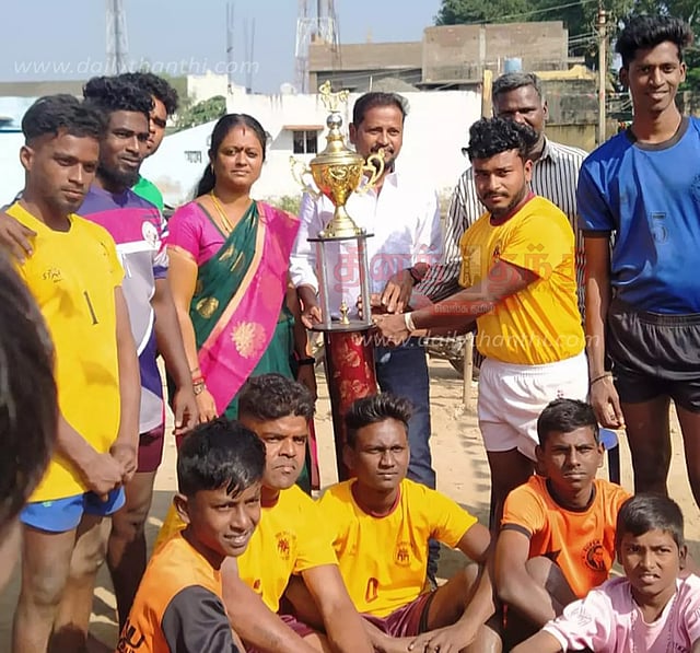 மிட்டாளம் அணியினர் முதல் பரிசும், மசிகம் அணியினர் 2-வது பரிசும் பெற்றனர். வெற்றி பெற்ற அணிகளுக்கு ஊராட்சி மன்ற தலைவர் சுவிதாகணேஷ் பரிசு கோப்பையை வழங்கினார். நிகழ்ச்சியில் ஊராட்சி மன்ற உறுப்பினர்கள், பொதுமக்கள் கலந்து கொண்டனர்.