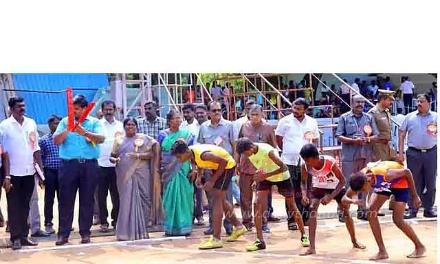 பள்ளிக்கல்வித்துறை சார்பில் கரூர் வருவாய் மாவட்ட அளவிலான குடியரசு தின தடகள போட்டிகள் புகழூர் அரசு ஆண்கள் மேல்நிலைப்பள்ளி டி.என்.பி.எல். விளையாட்டு மைதானத்தில் நேற்று நடைபெற்றது. மாவட்ட கலெக்டர் பிரபுசங்கர் ஒலிம்பிக் ஜோதியை ஏற்றி வைத்து தடகள போட்டியை தொடங்கி வைத்தார். இதில், கரூர், குளித்தலை, அரவக்குறிச்சி, கிருஷ்ணராயபுரம், தாந்தோன்றிமலை ஆகிய 5 குறுவட்ட அளவில் நடைபெற்ற தடகள போட்டிகளில் வெற்றி பெற்ற 14 மற்றும் 17 வயதுக்குட்பட்ட 850 மாணவ-மாணவிகள் ஆர்வத்துடன் கலந்து கொண்டனர்.