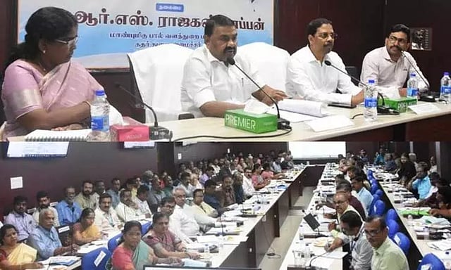 சென்னை நந்தனம் ஆவின் இல்லத்தில் பால்வளத்துறை மற்றும் கதர்த்துறை அமைச்சர் ராஜகண்ணப்பன் தலைமையில் அனைத்து மாவட்ட ஆவின் பொது மேலாளர்கள், துணை பதிவாளர்கள் ஆய்வுக்கூட்டம் நேற்று நடைபெற்றது.