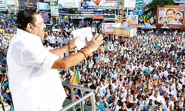 அதிமுக பொதுச்செயலாளர் எடப்பாடி பழனிசாமி, "மக்களை சந்திப்போம் தமிழகத்தை காப்போம்" என்னும் சுற்றுப்பயணம் மேற்கொண்டுள்ளார். அந்த வகையில் இன்று சிவகங்கை மாவட்டம் காரைக்குடியில் மக்களை சந்தித்து பரப்புரை செய்தார். அப்போது அவர் பேசியதாவது;