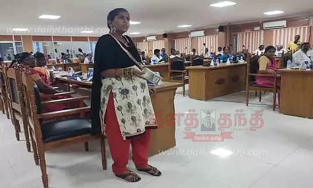 அப்பாது, தி.மு.க. கவுன்சிலர் இந்திராதேவி என்பவர் பணத்துடன் அதிகாரியை நாக்கி சென்றார்.