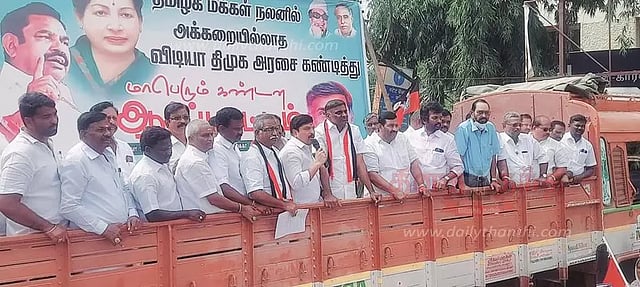 முன்னாள் அமைச்சரும், மாவட்ட செயலாளருமான கே.சி.வீரமணி ஆர்ப்பாட்டத்தை தொடங்கி வைத்து பேசினார்.