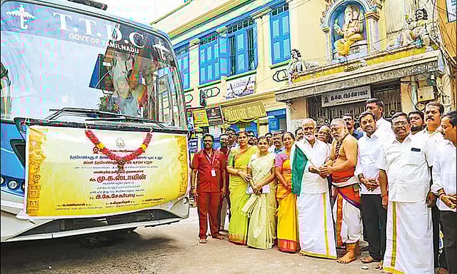 இந்து சமய அறநிலையத்துறை சுற்றுலாத்துறையுடன் இணைந்து ஏற்பாடு செய்துள்ள ஆடி மாத அம்மன் கோவில் ஆன்மிக சுற்றுலாவை சென்னை காளிகாம்பாள் கோவிலில் அமைச்சர் சேகர்பாபு கொடியசைத்து தொடங்கி வைத்தார்.