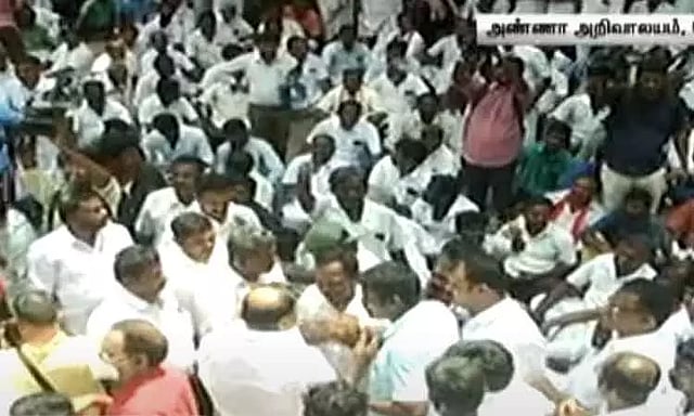 காவல்துறையினர் பேச்சுவார்த்தையில் ஈடுபட்டனர். தர்ணாவில் ஈடுபட்ட நிர்வாகிகளுடன் திமுக தலைமை நிலையசெயலாளர் பூச்சி முருகன் சமாதான பேச்சுவார்த்தையில் ஈடுபட்டார்.இதனால் அண்ணா அறிவாலயத்தில் பரபரப்பு ஏற்பட்டது..