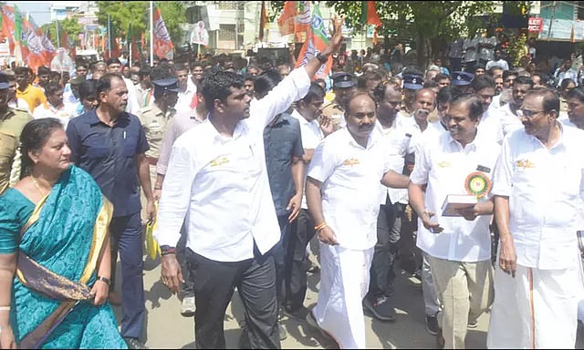 காலை 10 மணியளவில் தூத்துக்குடி மாநகராட்சி அலுவலகம் முன்பிருந்து தொண்டர்களுடன் பாதயாத்திரையாக புறப்பட்ட அண்ணாமலைக்கு சாலையின் இருபுறமும் பொதுமக்கள், கட்சியினர் திரண்டு நின்று உற்சாக வரவேற்பு அளித்தனர். தொடர்ந்து பாளையங்கோட்டை ரோடு, குரூஸ் பர்னாந்து சிலை சந்திப்பு, மேற்கு ரதவீதி, வடக்கு ரதவீதி, கிழக்கு ரதவீதி, வ.உ.சி. சாலை, மார்க்கெட் சாலை, அந்தோணியார் ஆலயம் சந்திப்பு, வி.இ.ரோடு, கான்வென்ட் ரோடு வழியாக சுமார் 4 கிலோ மீட்டர் தூரம் பாதயாத்திரை மேற்கொண்டு மதியம் 12.45 மணியளவில் சண்முகபுரம் கன்னி விநாயகர் கோவில் சந்திப்புக்கு வந்தார்.