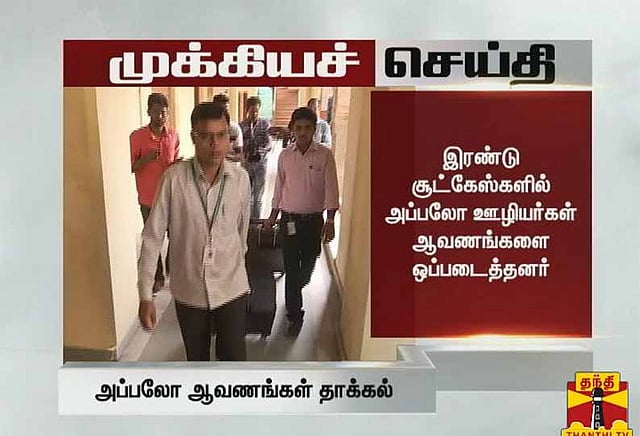இந்த நிலையில் ஜெயலலிதாவுக்கு அளிக்கப்பட்ட சிகிச்சை தொடர்பான ஆவணங்களை ஆறுமுகசாமி விசாரணை ஆணையத்தில் அப்போலோ நிர்வாகம் தாக்கல் செய்தது. நீதிபதி ஜெயலலிதாவுக்கு அளித்த சிகிச்சை தொடர்பான ஆவணங்கள் 2 பெரிய பெட்டிகளில் கொண்டு வரப்பட்டு தாக்கல் செய்யப்பட்டுள்ளன.