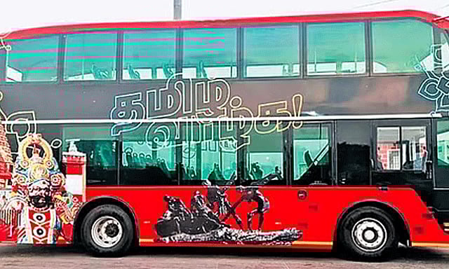 அதன்படி, அயலக தமிழர்கள் நிதி பங்களிப்புடன் முதல் கட்டமாக குளிர்சாதன வசதி கொண்ட ஒரு மின்சார டபுள் டெக்கர் பேருந்து அசோக் லேலண்ட் நிறுவனம் தயாரித்துள்ளது. சிவப்பு நிறத்தில் இருக்கும் இந்த பேருந்தின் இரு பக்கவாட்டிலும் தஞ்சை பெரியகோயில், கலங்கரை விளக்கம், ரிப்பன் கட்டிடம், ஜல்லிக்கட்டு காளையை அடக்கும் வீரன் உள்ளிட்ட புகைப்படங்கள் இடம்பெற்றுள்ளன. அதில், மிகப்பெரிய அளவில் தமிழ் வாழ்க என எழுத்துகளும் இடம்பெற்றுள்ளன.