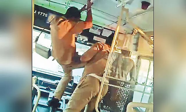 இதனால் மேலும் ஆத்திரமடைந்த டிரைவர் புண்ணியமூர்த்தி மற்றும் கண்டக்டர் பாலகுமார் இருவரும் சேர்ந்து டிரைவர் சிவானந்தத்தை சரமாரியாக அடித்து உதைத்தனர். கண்டக்டர் பாலகுமார், பஸ்சின் கம்பியை பிடித்து தொங்கியபடி சிவானந்தத்தை காலால் எட்டி உதைத்தார்.