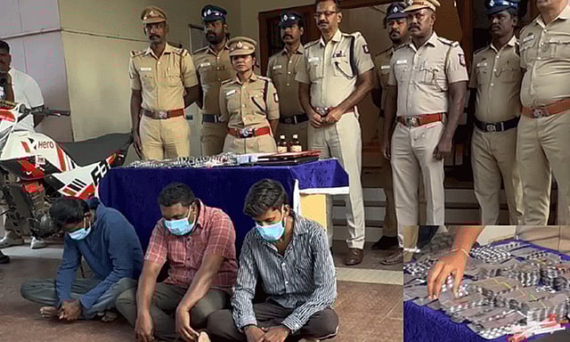 கைது செய்யப்பட்டவர்களிடம் இருந்து 2,500 வலி நிவாரணி மாத்திரைகள் பறிமுதல் செய்யப்பட்டன. மேலும் ரூ.10-க்கு வாங்கப்படும் மாத்திரையை 200 முதல் 500 ரூபாய் வரை விற்பனை செய்து வந்தது கண்டுபிடிக்கப்பட்டது.