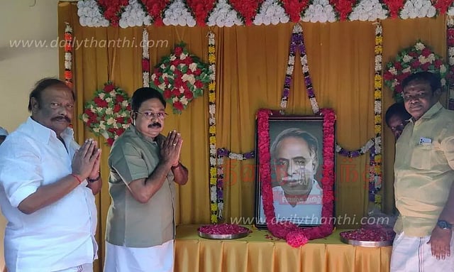 அ.ம.மு.க பொதுச்செயலாளர் டி.டி.வி. தினகரன் தஞ்சை மாவட்டம் சுவாமிமலையில் உள்ள ஒரு தனியார் விடுதியில் தங்கியிருந்தார். அங்கு அலங்கரித்து வைக்கப்பட்டு இருந்த அண்ணாவின் உருவ படத்திற்கு டி.டி.வி. தினகரன் மாலை அணிவித்து மரியாதை செய்தார்.