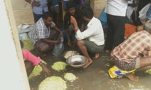 மதுரை மாட்டுத்தாவணி மலர் சந்தையில் மல்லிகைப்பூ கிலோ ரூ.800க்கும், முல்லை கிலோ ரூ.600-க்கும், பிச்சிப்பூ கிலோ ரூ.700க்கும், கனகாம்பரம் கிலோ ரூ.500க்கும், செண்டு கிலோ ரூ.100க்கும், தக்காளி ரோஸ் கிலோ ரூ.250க்கும், செவ்வந்தி ரூ.280க்கும், அரளிப்பூ ரூ.200க்கும், மரிக்கொழுந்து ரூ.100க்கும், வாடாமல்லி ரூ.100க்கும், கோழிக்கொண்டை ரூ.120க்கும் விற்பனை செய்யப்படுகிறது.