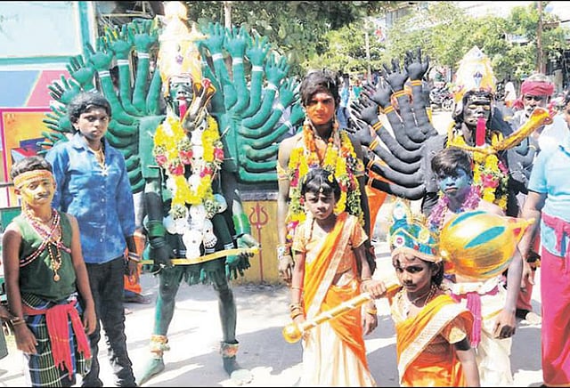 ஒவ்வொரு ஊரிலும் வேடம் அணிந்த பக்தர்கள் குழுக்களாக வாகனங்களில் ஊர் ஊராக சென்று, காணிக்கை வசூலித்து வருகின்றனர். தசரா குழுக்கள் சார்பில் கரகாட்டம், மேற்கத்திய நடனம், பரதநாட்டியம் உள்ளிட்ட கலைநிகழ்ச்சிகளும் நடத்தப்படுகிறது. விரதம் இருந்து காப்பு அணிந்த சில பக்தர்கள் தசரா திருவிழாவின் கடைசி சில நாட்கள் மட்டும் வேடம் அணிந்து, ஊர் ஊராக சென்று காணிக்கை வசூலித்து, கோவிலில் செலுத்துவார்கள். இதனால் தூத்துக்குடி, நெல்லை, கன்னியாகுமரி, விருதுநகர், ராமநாதபுரம் உள்ளிட்ட தென் மாவட்டங்களில் தசரா திருவிழா களைகட்டியது.