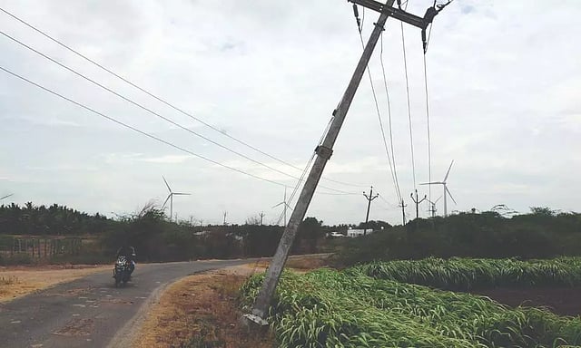 அதுபோன்ற சூழ்நிலையில் மின் கம்பங்கள் சரிந்து விளைநிலங்களுக்குள் விழக்கூடும். இதனால் விவசாயிகளுக்கும் விவசாயத் தொழிலாளர்களுக்கும் மட்டுமல்லாமல் கால்நடைகளுக்கும் ஆபத்து ஏற்படும் அபாயம் உள்ளது. அதுமட்டுமல்லாமல் மின் கம்பிகள் சாலையில் அறுந்து விழும் அபாயம் உள்ளது. எனவே உடனடியாக மின் கம்பங்களை சீரமைக்க அதிகாரிகள் நடவடிக்கை எடுக்க வேண்டும் என்று விவசாயிகள் மற்றும் பொதுமக்கள் கோரிக்கை விடுத்துள்ளார்.