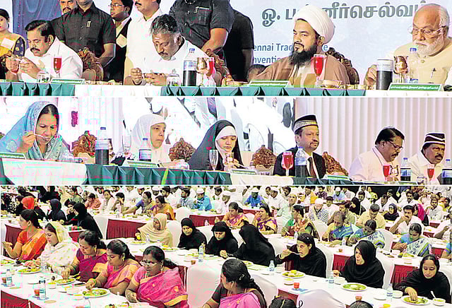 அ.தி.மு.க. சார்பில் நோன்பு திறக்கும் நிகழ்ச்சி சென்னை நந்தம்பாக்கத்தில் உள்ள சென்னை வர்த்தக மைய வளாகத்தில் நேற்று மாலை நடந்தது. இந்த நிகழ்ச்சிக்கு கட்சியின் ஒருங்கிணைப்பாளரும், துணை முதல்-அமைச்சருமான ஓ.பன்னீர்செல்வம், இணை ஒருங்கிணைப்பாளரும், முதல்-அமைச்சருமான எடப்பாடி பழனிசாமி ஆகியோர் தலைமை தாங்கினர்.