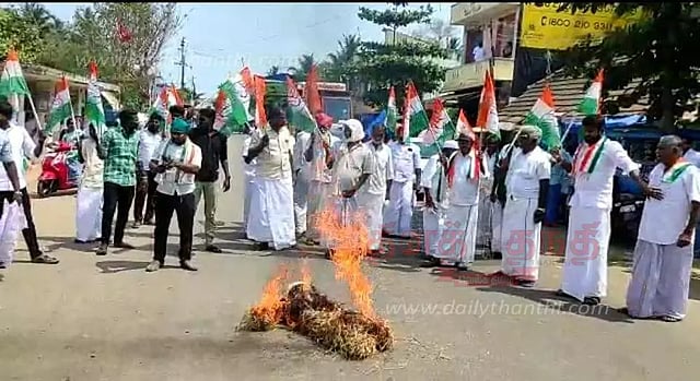 ராகுல் காந்தியின் எம்.பி. பதவி பறிக்கப்பட்டதை கண்டித்து காங்கிரஸ் கட்சியினர் நேற்று பாப்பாநாட்டில் போராட்டம் நடத்தினர். போராட்டத்திற்கு தஞ்சை தெற்கு மாவட்ட இளைஞர் காங்கிரஸ் தலைவர் டி.எஸ்.ஆர்.சங்கரசூரியமூர்த்தி தலைமை தாங்கினார். இதில் ஆவிடநல்லவிஜயபுரம் ஆர்.திருஞானம், சோழகன்குடிக்காடு அய்யாதுரை ராமகிருஷ்ணன், ராமலிங்கம் உள்ளிட்ட காங்கிரஸ் கட்சி பிரமுகர்கள் கலந்து கொண்டனர். போராட்டத்தின் போது காங்கிரஸ் கட்சி பிரமுகர்கள் பிரதமர் நரேந்திர மோடிக்கு எதிராக கோஷங்களை எழுப்பியவாறு, அவரது உருவ பொம்மையை தீ வைத்து எரித்து மறியலில் ஈடுபட்டனர். தகவல் அறிந்ததும் சம்பவ இடத்திற்கு விரைந்து சென்ற பாப்பாநாடு போலீசார் போராட்டத்தில் ஈடுபட்ட காங்கிரஸ் கட்சியினர் 15-க்கும் மேற்பட்டோரை கைது செய்தனர்.