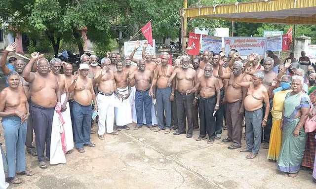 திண்டுக்கல் மின்வாரிய மேற்பார்வை பொறியாளர் அலுவலகம் முன்பு மின்வாரிய ஓய்வுபெற்றோர் நல அமைப்பு சார்பில் அரை நிர்வாண போராட்டம் நடைபெற்றது. இதில் பங்கேற்ற ஆண்கள் மேல்சட்டை அணியாமல் வேட்டி, பேண்ட் மட்டுமே அணிந்து கலந்து கொண்டனர். இந்த போராட்டத்துக்கு மாவட்ட தலைவர் சுப்பிரமணியம் தலைமை தாங்கினார். இணை செயலாளர் உமாபதி வரவேற்றார். மாநில செயலாளர் செல்வராஜ் கலந்து கொண்டு கோரிக்கைகளை வலியுறுத்தி பேசினார். அப்போது மின்வாரிய ஓய்வூதியர்களுக்கு 3 சதவீத அகவிலைப்படி வழங்க வேண்டும். மின்வாரியம் பொதுத்துறை நிறுவனமாக தொடர்ந்து செயல்பட வேண்டும். மருத்துவ காப்பீடு திட்டத்தை அரசே ஏற்று நடத்த வேண்டும். புதிய ஓய்வூதிய திட்டத்தை ரத்து செய்துவிட்டு பழைய ஓய்வூதிய திட்டத்தை மீண்டும் செயல்படுத்த வேண்டும் என்பன உள்பட பல்வேறு கோரிக்கைகளை வலியுறுத்தி கோஷமிட்டனர்.