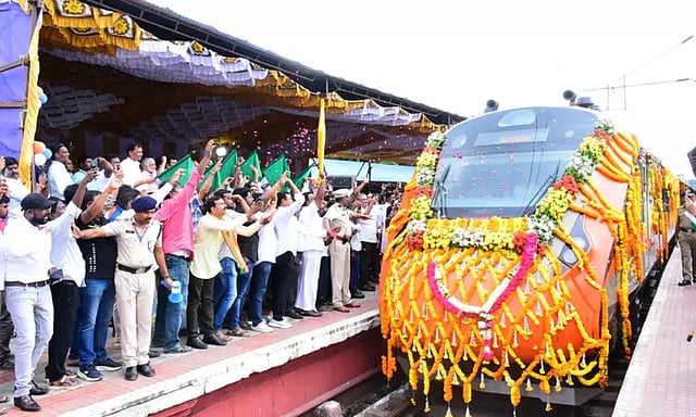 இந்தநிலையில், கேரளா மாநிலம் எர்ணாகுளத்தில் இருந்து புறப்பட்ட வந்தே பாரத் ரெயில், கோவை நிலையம் வந்தது. அப்போது வந்த வந்தேபாரத் ரெயிலுக்கு பயணிகள், அதிகாரிகள், மாணவர்கள் மலர் தூவி உற்சாக வரவேற்பு அளித்தனர். அதேபோல, திருப்பூர் ரெயில் நிலையத்திலும் புதிய வந்தே பாரத் ரெயிலுக்கு வரவேற்பு அளிக்கப்பட்டது.