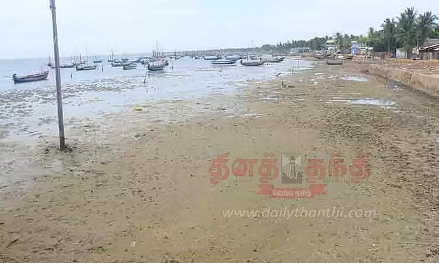 இதன் காரணமாக கரையோரத்தில் உள்ள கடல் பகுதியில் நிறுத்தி வைக்கப்பட்டிருந்த மீன்பிடி படகுகள் தரை தட்டியபடி நின்றன. பகல் 12 மணிக்கு பிறகு மீண்டும் கடல் நீர் ஏறி அந்த பகுதியானது இயல்பு நிலைக்கு திரும்பியது.