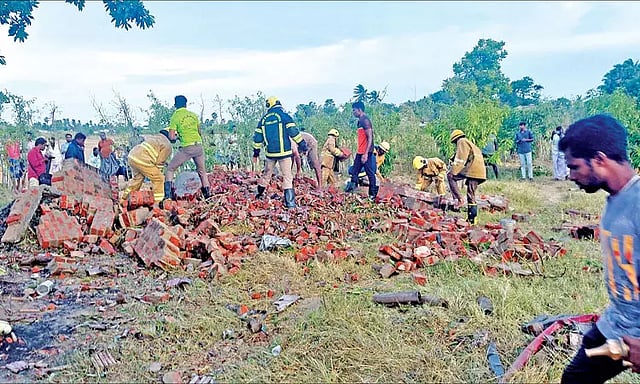 அப்போது எதிர்பாராதவிதமாக திடீரென பட்டாசுகள் பயங்கர சத்தத்துடன் வெடித்து சிதறின.