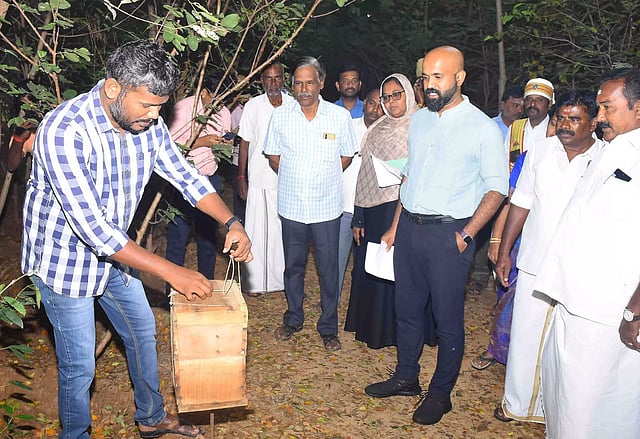 பரமக்குடி ஊராட்சி ஒன்றியத்துக்கு உட்பட்ட அரியனேந்தல் ஊராட்சியில் உள்ள பூங்கா நகர் பகுதியில் ஊரக வளர்ச்சித் துறையின் மூலம் தேசியஊரக வேலை உறுதி திட்டத்தின் கீழ் நாற்றங்கால் பண்ணை அமைக்கப்பட்டு வருவதையும் குறுங் காடுகள் உருவாக்கி அதில் தேனீக்கள் வளர்ப்பதையும் கலெக்டர் ஜானிடாம் வர்கீஸ் பார்வையிட்டார். பின்னர் நாற்றங்கால் பண்ணையை பார்வையிட்டு ஆய்வு செய்தார். அப்போது அவர் கூறியதாவது:- மாவட்டத்தில் உள்ள அங்கன்வாடி மையங்கள் மற்றும் சத்துணவு மையங்கள் உள்ள பகுதிகளை சுற்றி காய்கறி தோட்டங்கள் உருவாக்கி பயன்பெற அரசு அறிவித்துள்ளது. அதன்படி நாற்றங்கால் பண்ணையின் மூலம் முருங்கை கருவேப்பிலை பயிரிட்டு அதன் மூலம் வருமானம் கிடைக்கும். மேலும் மல்லிகை பூ, செவ்வந்திப் பூ நாவல் பல கன்று, பப்பாளி உள்ளிட்ட கன்றுகள் வளர்த்து குறுகிய காலத்தில் நாம் பெறலாம். பொதுமக்களும் அவைகளை ஆர்வமுடன் வங்கி பயன்பெற ஏதுவாக இருக்கும். எனவே ராமநாதபுரம் மாவட்டத்தில் உள்ள 429 ஊராட்சிகளிலும் நாற்றங்கால் பண்ணை அமைத்து அந்தந்த பகுதிகளில் உள்ள மக்களுக்கு மரக்கன்றுகள் வழங்கவும் அரசு இடங்களில் குறுங்காடுகள் அமைத்து பராமரித்து பயன்பெற வேண்டும். இவ்வாறு அவர் கூறினார். நிகழ்ச்சியில் பரமக்குடி ஊராட்சி ஒன்றிய வட்டார வளர்ச்சி அலுவலர் உம்முல் ஜாமியா, கிராம வட்டார வளர்ச்சி அலுவலர் சந்திரமோகன், ஊராட்சி ஒன்றிய துணைத்தலைவர் ராஜேந்திரன், ஊராட்சி மன்ற தலைவர் உள்பட அதிகாரிகள் பலர் கலந்து கொண்டனர்.