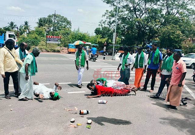 பின்னர் அவர்கள் திடீரென தரையில் படுத்து உருண்டனர். தொடர்ந்து ஆர்ப்பாட்டம் குறித்து வாக்கடை புருசோத்தமன் கூறுகையில், ''தனியார் கடைகளில் தடை செய்யப்பட்ட பூச்சிக்கொல்லி மருந்துகள் விற்பனை செய்யப்படுகிறது. இது குறித்து வேளாண்மை அதிகாரிகள் ஆய்வு செய்து அவற்றை பறிமுதல் செய்ய வேண்டும்.