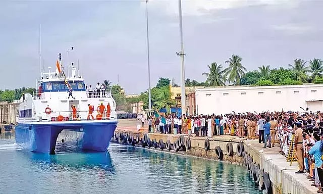 நாகை துறைமுகத்தில் இருந்து இலங்கை காங்கேசன் துறைமுகம் இடையே கடந்த ஆண்டு ஆகஸ்ட் 16-ம் தேதி சிவகங்கை பயணிகள் கப்பல் போக்குவரத்து தொடங்கியது. இந்த கப்பல் வாரத்தில் 5 நாட்களுக்கு இயக்கப்பட்டு வந்த நிலையில் வடகிழக்கு பருவமழை காரணமாக கடந்த சில மாதங்களுக்கு முன்பு கப்பல் போக்குவரத்து தற்காலிமாக நிறுத்தி வைக்கப்பட்டிருந்தது.