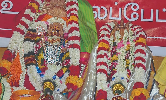 உடுமலை மாரியம்மன் கோவிலில் நடைபெற்ற திருக்கல்யாண வைபவத்தில் திரளான பக்தர்கள் கலந்துகொண்டு சாமி தரிசனம் செய்தனர்.