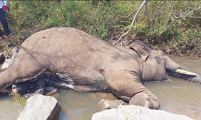 கிருஷ்ணகிரி மாவட்டம் ஓசூர் வனக்கோட்டம் தேன்கனிக்கோட்டை வனச்சரகத்திற்கு உட்பட்டது மாமரத்துப்பள்ளம். இங்கு வனப்பகுதியில் ஆண் யானை ஒன்று இறந்து கிடப்பதாக நேற்று முன்தினம் இரவு வனத்துறையினருக்கு தகவல் கிடைத்தது. அதன் பேரில் நேற்று காலை வனத்துறையினர் அங்கு சென்றனர்.
